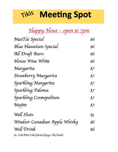 You can call us Tikis, or the Meeting Spot, or even the Spot but whatever you call us, we can be found at: